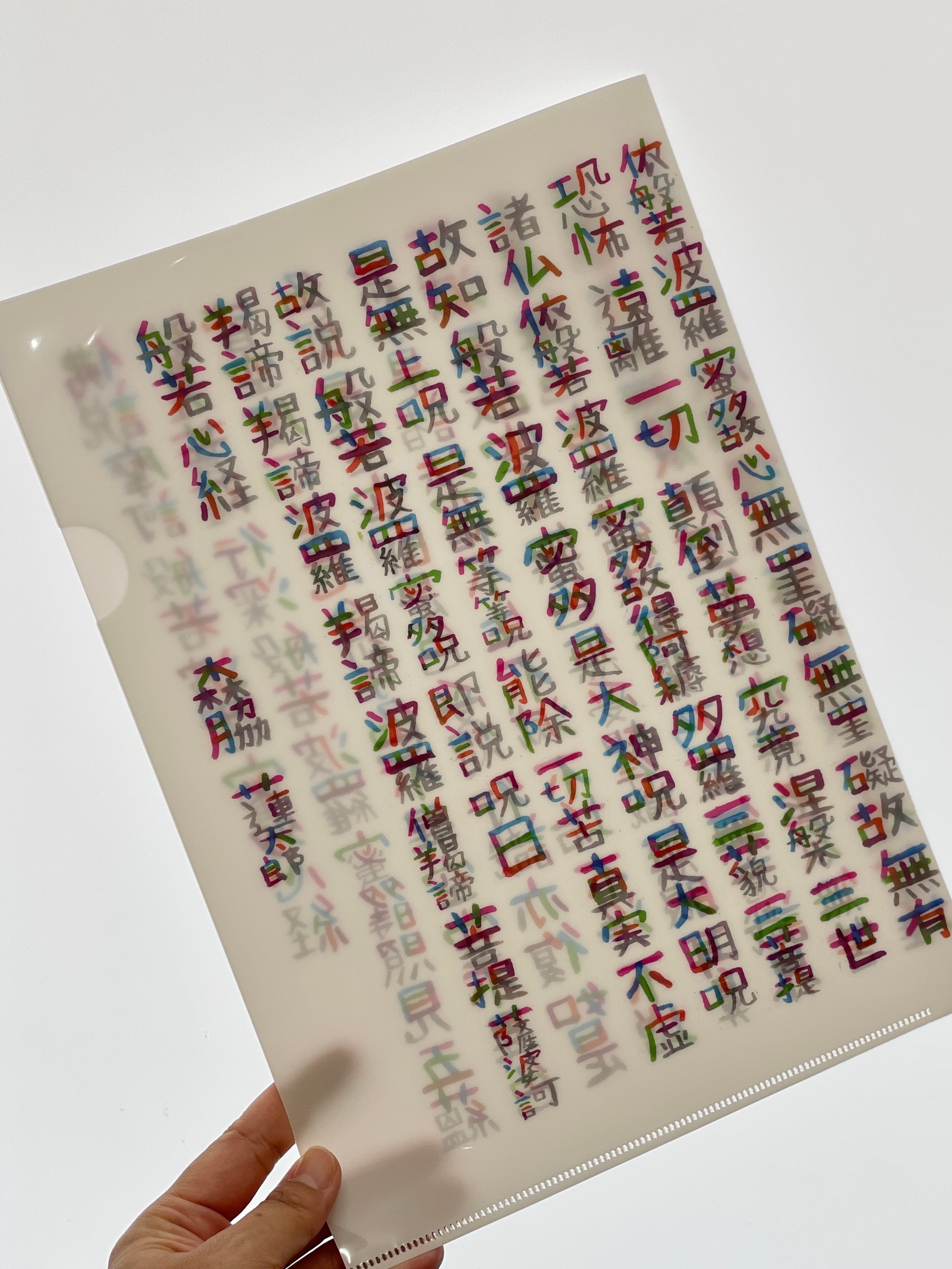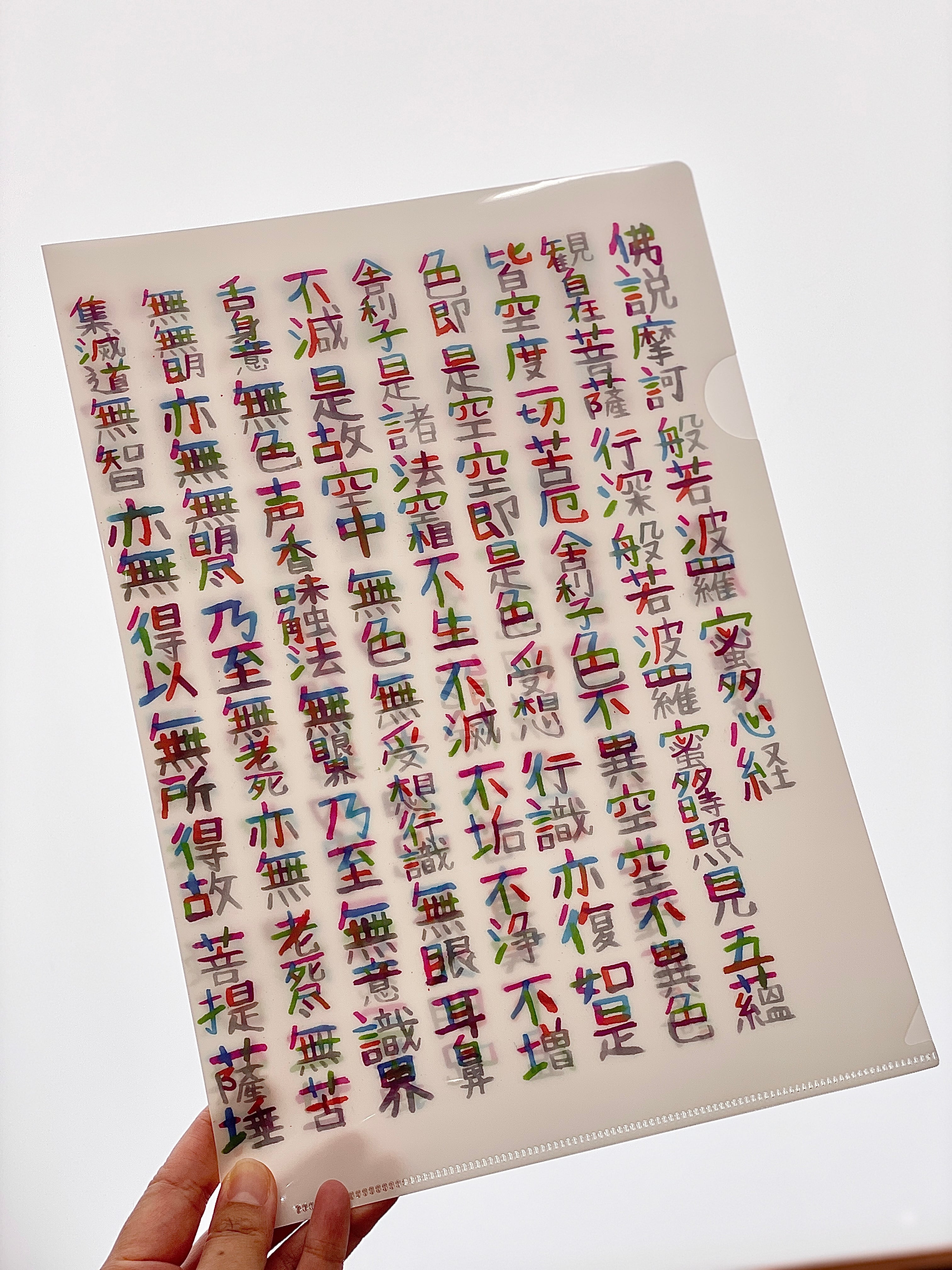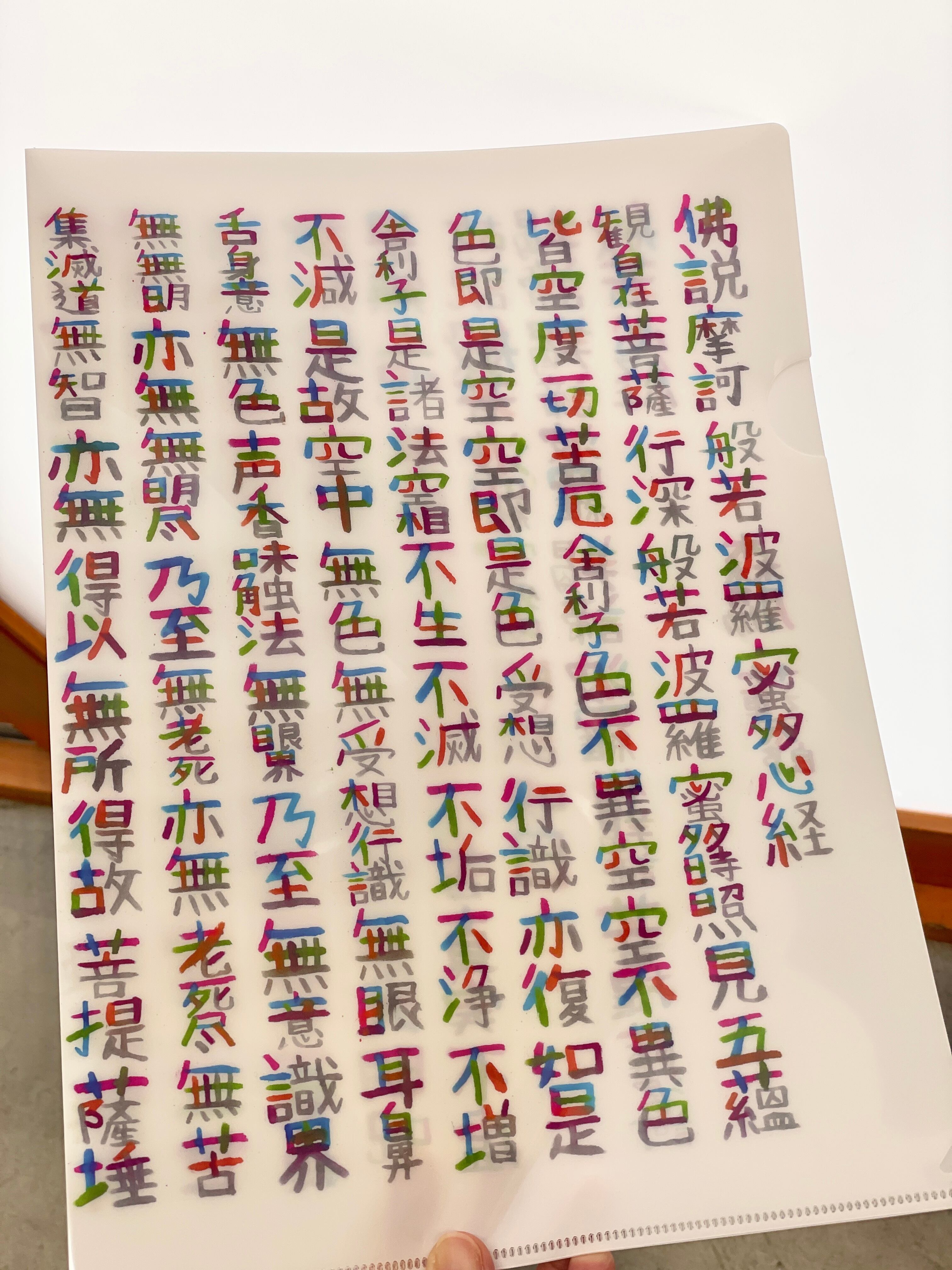 蓮ちゃんのカラフルで面白い文字で書かれた般若心経ファイル。